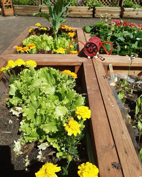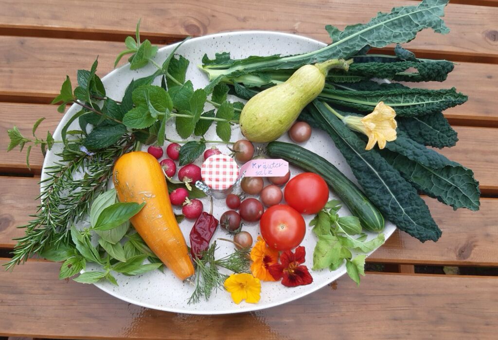 Schöne Blumen, Kräuter, Salat, Tomaten und anderes Gemüse wachsen heran. Auch die erste Ernte konnte bereits eingeholt werden und das frisch geerntete und eigens herangezogene Gemüse schmeckt natürlich besonders gut!